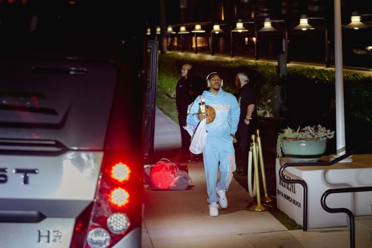 因为热爱篮球!开拓者官方晒凯勒布-乐福带着篮球离开球馆照